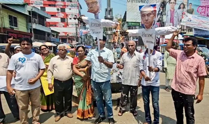 নিরীহ ফিলিস্তিনিদের উপর মার্কিন সাম্রাজ্যবাদের মদদে ইসরায়েলের আগ্রাসন ও বর্বরোচিত গণহত্যার প্রতিবাদে সুনামগঞ্জে বিক্ষোভ সমাবেশ অনুষ্ঠিত হয়।