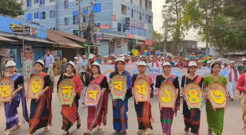 সোমবার (১৪ এপ্রিল) সকালে রাঙ্গামাটি জেলা প্রশাসনের আয়োজনে পৌরসভা প্রাঙ্গন থেকে আনন্দ শোভাযাত্রা শুরু হয়। বাঙ্গালী নারী পুরুষ সহ পাহাড়ের বিভিন্ন ক্ষুদ্র জাতি গোষ্ঠির মানুষ বর্নিল এ বর্ষবরণ উৎসবে অংশ নেয়।