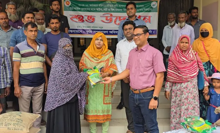 তবে তিন হাজার কৃষক প্রত্যেক কৃষককে ৫ কেজি উফসী আউশ ধানবীজ, ১০ কেজি ডিএপি, ১০ কেজি এমওপি সার বিতরণ করা হয়। এছাড়া ৯০ জন কৃষক প্রত্যেককে ১ কেজি করে পাট বীজ ৫ কেজি ডিএপি, ৫ কেজি এমওপি এবং ২০ জন প্রত্যেককে ১ কেজি তিলের বীজ ১০ কেজি ডিএপি এবং ৫ কেজি এমওপি সার প্রদান করা হয়।