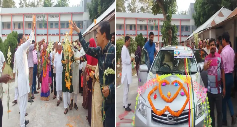 বৃহস্পতিবার (১৭ এপ্রিল) সকালে ফরিদপুরের আলফাডাঙ্গা আদর্শ কলেজের দৃশ্য ছিল এমন। কলেজের রাষ্ট্রবিজ্ঞান বিভাগের সহকারী অধ্যাপক মো. রবিউল হক মিয়া দীর্ঘ কর্মজীবন শেষে অবসরে গেছেন। তাই প্রিয় শিক্ষককে বিদায় জানাতে কলেজ কর্তৃপক্ষ এসব আয়োজন করেন। এ আয়োজন দেখে অবসরে যাওয়া শিক্ষক রবিউল হক মিয়া আবেগে আপ্লুত হয়ে পড়েন।