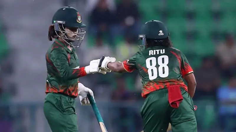 এরপরেই তাসের ঘরের মতো গুঁড়িয়ে গিয়েছে বাংলাদেশের মিডলঅর্ডার। দুই ভরসাযোগ্য ব্যাটার নিগার সুলতানা জ্যোতি আর রিতু মণি ফিরে গিয়েছেন ক্রিজে থিতু হওয়ার আগেই। জ্যোতি করেছেন ৫ আর ১৫ রান রিতুর। স্বর্ণা আর ফাহিমাও পারেননি বিপর্যয় ঠেকাতে। ফারজানা এবং শারমিনের পর অতিরিক্ত থেকে এসেছে সর্বোচ্চ ২০ রান।