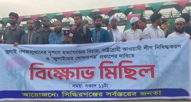 জুলাই গণঅভ্যুত্থানের নৃশংস হত্যাযজ্ঞের বিচার, রাষ্ট্রদ্রোহী আওয়ামী লীগ নিষিদ্ধকরণ ও জুলাইয়ে ঘোষণাপত্র প্রকাশের দাবিতে