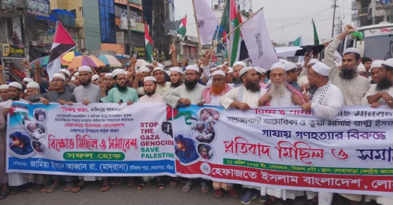 ফিলিস্তিনে গনহত্যা ও বর্বরোচিত হামলার প্রতিবাদে ইসরায়েলের প্রধানমন্ত্রী নেতানিয়াহুর বিচারের দাবীতে বিক্ষোভ করেছে হেফাজতে ইসলাম লোহাগাড়া শাখা।