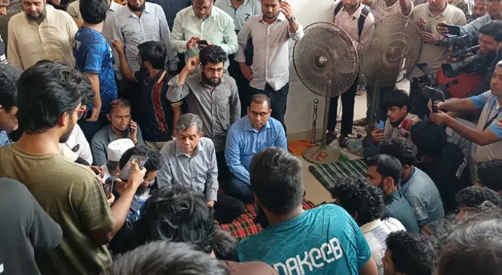 এসময় শিক্ষা উপদেষ্টা প্রায় আধা ঘণ্টা অনশনরত ও অন্য শিক্ষার্থীদের সামনে বসে তাদের সঙ্গে কথা বলেন। তবে অনশনরত শিক্ষার্থীদের সঙ্গে শিক্ষা মন্ত্রণালয়ের উপদেষ্টা সি আর আবরার কথা বলার পরও কোন সমাধান হয়নি।
