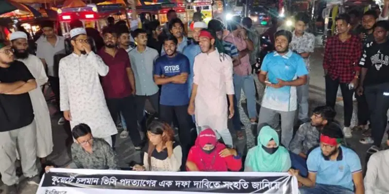 কুয়েটের ভিসির অপসারণের দাবীতে বরিশাল ব্লকেড পালন করেছে বৈষম্য বিরোধী আন্দোলনের শিক্ষার্থীরা।