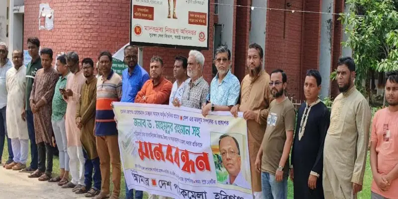 দৈনিক আমার দেশ-এর সম্পাদক ও প্রকাশক ড. মাহমুদুর রহমানসহ চার সাংবাদিকের বিরুদ্ধে মেঘনা গ্রুপের চেয়ারম্যান মোস্তফা কামালের দায়ের করা মিথ্যা মামলা প্রত্যাহারের দাবিতে হবিগঞ্জে মানববন্ধন কর্মসূচি পালিত হয়েছে।