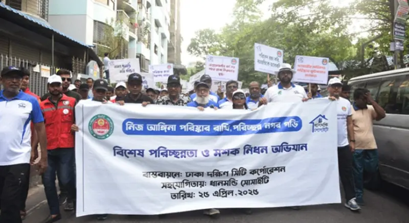 রাজধানীর ধানমন্ডিতে প্রায় ৮০০ কর্মী-স্বেচ্ছাসেবীর সমন্বয়ে মশক নিধন ও বিশেষ পরিচ্ছন্নতা অভিযান পরিচালনা করেছে ঢাকা দক্ষিণ সিটি কর্পোরেশন (ডিএসসিসি)।