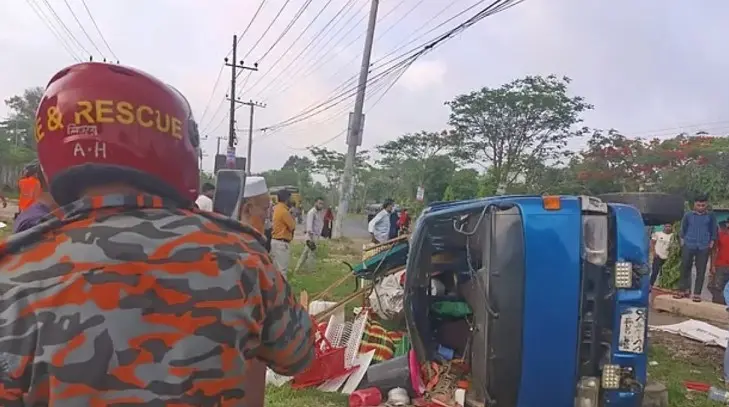 ফায়ার সার্ভিস ও হাইওয়ে পুলিশ জানায়, চট্টগ্রামের একটি বেসরকারি প্রতিষ্ঠানে চাকরি হওয়ার সুবাদে ঢাকা থেকে পরিবার ও মালামালসহ চট্টগ্রামের উদ্দেশে রওনা হন জামাল উদ্দিন। মালামালসহ তাদের বহন করা পিকআপ ভ্যানটি বাঁশবাড়িয়া এলাকা অতিক্রম করার সময় একটি যাত্রীবাহী বাস ওই পিকআপ ভ্যানটিকে ওভারটেক করার চেষ্টা করে। এতে বাসটির পেছনের অংশের সঙ্গে পিকআপ ভ্যানের সজোর ধাক্কা লাগে এবং সেটি নিয়ন্ত্রণ হারিয়ে মহাসড়কের পাশে উল্টে যায়। এতে ঘটনাস্থলেই শিশুটি নিহত হয়।