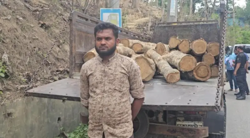 শনিবার (২৬ এপ্রিল) সকালে জেলা শহরের মেঘলা এলাকায় অভিযান চালিয়ে তাকে আটক করে র্যাব ১৫ এর একটি দল। এসময় ৬০ টুকরো অনুমোদনহীন সেগুন গোল কাঠ জব্দ করা হয়।