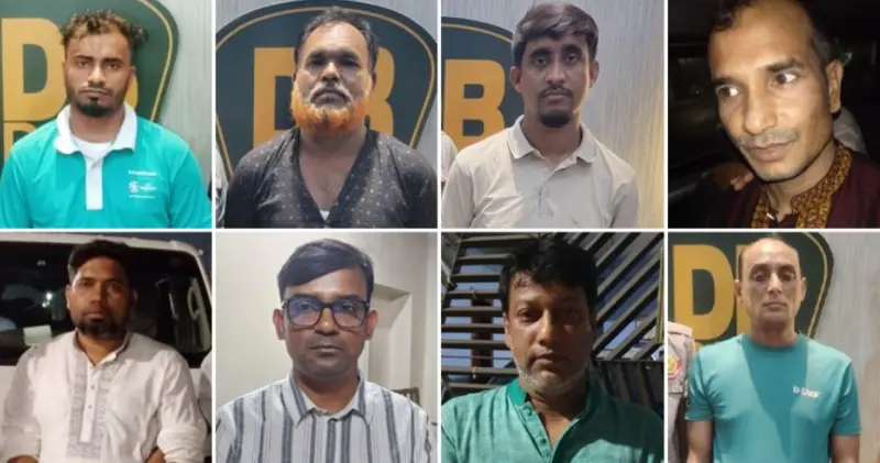 গ্রেফতার ৮ জন হলো, কামরাঙ্গীরচর থানার ৫৭ নং ওয়ার্ড যুবলীগের যুগ্ম সাধারণ সম্পাদক শামীম আহমেদ শহিদ (৪১), বংশাল থানা ৩৩ নং ওয়ার্ড যুবলীগ সভাপতি মো. জিয়া মিয়া (৪৫), ২৮ নং ওয়ার্ড শেরে বাংলা নগর থানা আওয়ামী লীগের সহ-সভাপতি মো. আব্দুর রব পাটোয়ারী (৫০), ২৮ নং ওয়ার্ড যুবলীগ, শেরে বাংলা নগর থানার সহ-সভাপতি মো. কবির হোসেন ওরফে পানি কবির (৩৫), ৪৮ নং ওয়ার্ড ছাত্রলীগের সাবেক সভাপতি ও আওয়ামী লীগের ৪৮ নং ওয়ার্ড সাধারণ সম্পাদক প্রার্থী এম কে আজিম, মহানগর উত্তর তুরাগ থানা কৃষক লীগ নেতা মো. দেলোয়ার হোসেন (৪২), বঙ্গবন্ধু জাতীয় যুব পরিষদ, কেন্দ্রীয় কমিটির বন ও পরিবেশবিষয়ক সম্পাদক রায়হান আহমেদ (৪৩) ও বাংলাদেশ কৃষক লীগের কেন্দ্রীয় কমিটির সহ সংস্কৃতি বিষয়ক সম্পাদক ও সাবেক স্বেচ্ছাসেবক লীগের রামপুরা থানার সভাপতি মোহাম্মদ কামরুল ইসলাম খান লিটু (৪৫)।