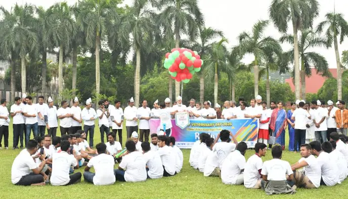 'প্রাণীর স্বাস্থ্য রক্ষায় দলগত প্রচেষ্টা দরকার' স্লোগানকে সামনে রেখে বর্ণাঢ্য আয়োজনের মধ্য দিয়ে বাংলাদেশ কৃষি বিশ্ববিদ্যালয়ে (বাকৃবি) বিশ্ব ভেটেরিনারি দিবস উদযাপিত হয়েছে। দিবসটি উপলক্ষে বর্ণাঢ্য র্যালি, কেক কাটা, আলপনা অঙ্কন, সাংস্কৃতিক অনুষ্ঠানসহ নানা আয়োজন করে ভেটেরিনারি অনুষদ।