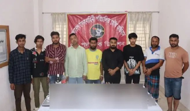 আটককৃতরা হলেন- মো. রুবেল (৩৫), মো. আকিব হোসেন (২৯), মো. সাজ্জাদ হোসেন (৪৭) মো. শাহাদাত হোসেনকে (২৮), মো. সাইফুল ইসলাম (১৯), মো. ইমরান হোসেন রতন (১৯), মো. মোজাহিদ (২১) মো. রাফিউল আলম শফিকে (২০) ও হুমায়ূন কবির (৪৫)।