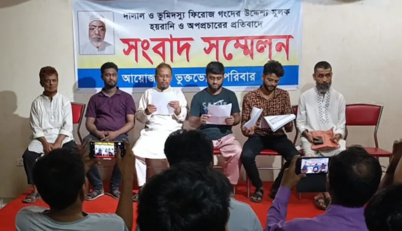 পরবর্তীতে তারা সেখানে সীমানা প্রাচীর ও টিনসেড ঘর নির্মাণ করতে গেলে রিটন-ফিরোজরা ১০ লাখ টাকা চাঁদা দাবি করে। ওই টাকা না দেওয়ায় তারা আমাদেরকে বিভিন্ন হুমকি দিয়ে আসছে। ২১ এপ্রিল বিরোধীয় জমিতে পুকুর ভরাট বন্ধে আবেদন করি। ওই আবেদনকে কেন্দ্র করে উদ্দেশ্যপ্রণোদিতভাবে আমাদের বিরুদ্ধে সংবাদ সম্মেলন করে মিথ্যা অভিযোগ করে তারা। আমরা এর তীব্র নিন্দা জানাই।