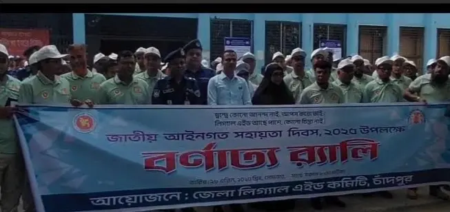 চাঁদপুরে জাতীয় আইনগত সহায়তা দিবসে বর্ণাঢ্য শোভাযাত্রা ও আলোচনা সভা অনুষ্ঠিত হয়েছে।