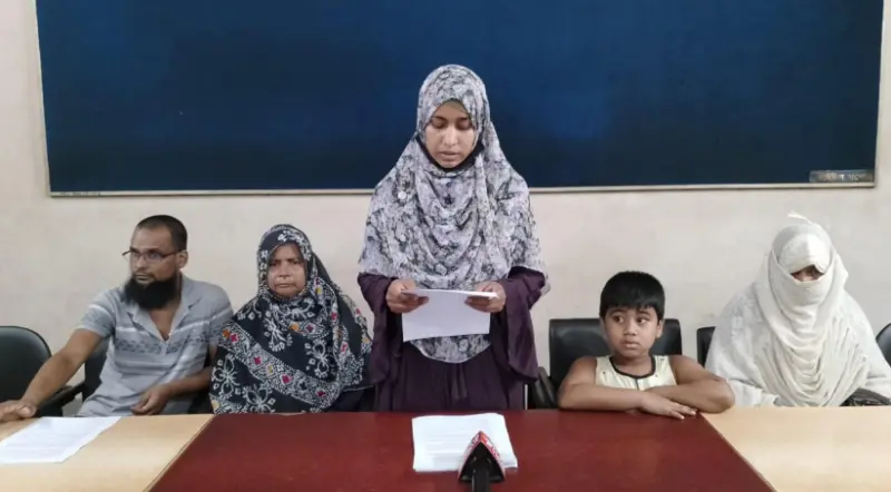সংবাদ সম্মেলনে তার শিশু সন্তানসহ পরিবারের সদস্যরা উপস্থিত ছিলেন।