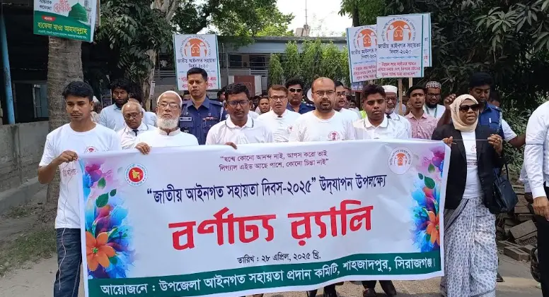 "দ্বন্ডে কোন আনন্দ নাই আপোস কর ভাই, লিগ্যাল এইড পাশে আছে, কোন চিন্তা নাই" এই প্রতিপাদ্য বিষয়কে সামনে রেখে সিরাজগঞ্জের শাহজাদপুরে জাতীয় আইনগত সহায়তা দিবস ২০২৫ উপলক্ষে র্যালী ও আলোচনা সভা অনুষ্ঠিত হয়েছে।