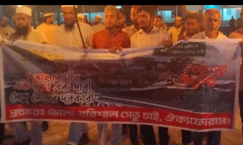 "দাবী মোদের একটাই, ভোলা-বরিশাল সেতু চাই" এই স্লোগানে ভোলার চরফ্যাশনে মশাল মিছিল করেছেন ভোলা-বরিশাল সেতু চাই ঐক্য ফোরাম।