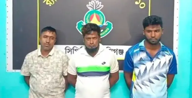 গ্রেপ্তারকৃতরা হলেন, মো. জাহাঙ্গীর হোসেন ওরফে আলামিন (৪০), মো. দোলোয়ার হোসেন দেলু (৪০) ও শওকত আকবর (২৮)।