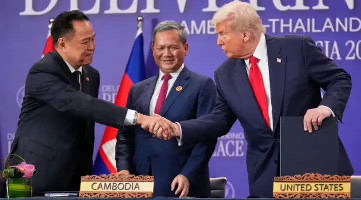 মার্কিন প্রেসিডেন্ট ডোনাল্ড ট্রাম্পের উপস্থিতিতে যুদ্ধবিরতি চুক্তিতে সই করেছে থাইল্যান্ড ও কম্বোডিয়া। মালয়েশিয়ায় সই হওয়া এ চুক্তিতে স্বাক্ষর করেন ট্রাস্প নিজেও।