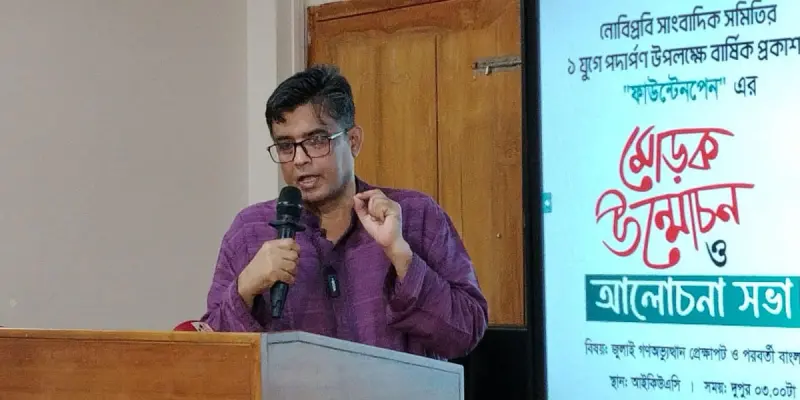 তিনি আরও বলেন, বাংলাদেশে জুলাই-আগস্টে যে আন্দোলন হল, সে আন্দোলনের ফসল হচ্ছে অন্তবর্তীকালীন সরকার। অন্তবর্তীকালীন সরকার চাই, বাংলাদেশের যে কেউ যে প্রান্তে থাকুক, সে একজন ক্যাম্পাস সাংবাদিক হোক বা বড় সাংবাদিক, তারা যেন কোন ধরণের বড় বাধা ছাড়া সাংবাদিকতা করতে পারে। আমরা একটা বড় বিষয় দেখছি যে সোশ্যাল মিডিয়ায় প্রচুর ফেইক নিউজ আসে। এ ফেইক নিউজকে প্রতিরোধ করা যে কোন সরকার বা দেশের জন্য বড় চ্যালেঞ্জ। এই জায়গাটা আমাদের সবাই মিলে কাজ করতে হবে। এই কাজে সাহায্য করতে পারে আপনাদের মত সাংবাদিক ক্লাব।
