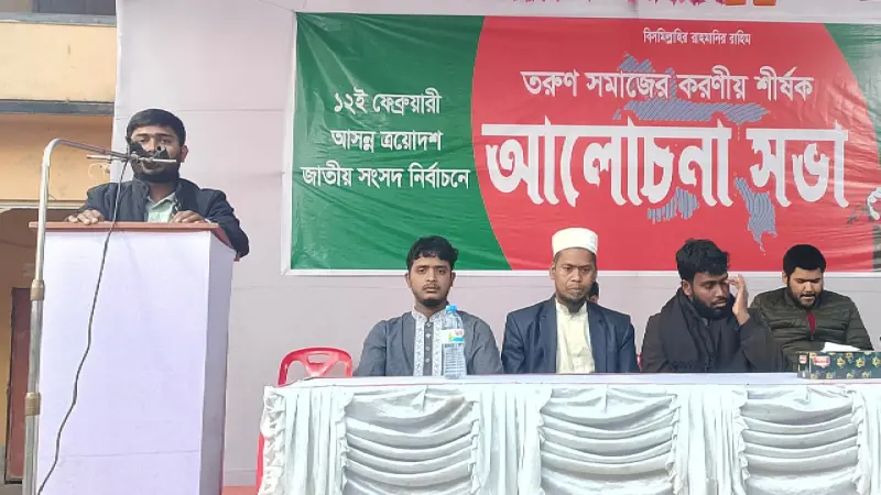 রাকিবুল ইসলাম বলেন, আগামী ১২ ফেব্রুয়ারি ত্রয়োদশ জাতীয় সংসদ নির্বাচনে দাঁড়িপাল্লা প্রতীককে বিজয়ী করার মধ্য দিয়ে ইনসাফ প্রতিষ্ঠায় বাংলাদেশ ইসলামী ছাত্রশিবির অঙ্গীকারবদ্ধ। তিনি বলেন, তরুণ প্রজন্মের নৈতিক ও বুদ্ধিবৃত্তিক বিকাশে ইসলামী ছাত্রশিবির শুরু থেকেই ভূমিকা রেখে আসছে। দেশপ্রেমিক ও আদর্শবান শিক্ষার্থী গড়ে তুলতে সংগঠনটি প্রতিষ্ঠালগ্ন থেকে সক্রিয়ভাবে কাজ করছে এবং ভবিষ্যতেও তা অব্যাহত থাকবে।