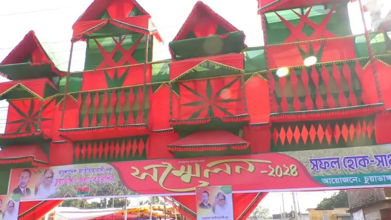 দীর্ঘ ১৪ বছর পর আগামীকাল শনিবার (২৩ নভেম্বর) চুয়াডাঙ্গা জেলা বিএনপির সম্মেলন অনুষ্ঠিত হতে যাচ্ছে। এ কারণে গোটা জেলাকে নতুন সাজে সজ্জিত করা হয়েছে। উৎসবের আমেজ ছড়িয়ে পড়েছে দলের তৃণমূল নেতাকর্মীদের মধ্যেও। তোরণ, পোস্টার, ফেস্টুনে ছেয়ে গেছে শহরের রাজপথ। আর এতে শোভা পাচ্ছে, কেন্দ্রীয় ও জেলার শীর্ষ নেতাদের ছবি। সম্মেলনস্থল শহরের টাউন ফুটবল মাঠ সেজেছে বর্ণিল সাজে। মাঠের পশ্চিম প্রান্তে বিশাল আকৃতির মঞ্চ তৈরি করা হয়েছে। সম্মেলনে ১৩ হাজার নেতাকর্মীর সমাবেশ ঘটবে এমন প্রত্যাশাই করছেন জেলা বিএনপির শীর্ষ নেতারা।
