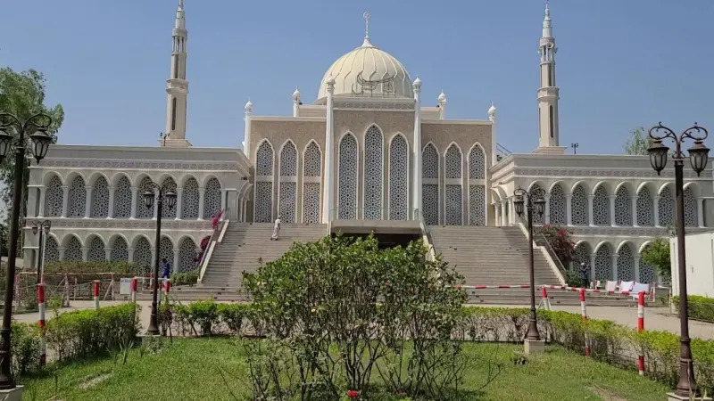 এ মসজিদের মোয়াজ্জিন মাও.মাহবুবুর রহমান বলেন, এ মসজিদে ছাই রঙের বিশালাকৃতির মনোরম একটি গম্বুজ রয়েছে। এছাড়া মেঝেতে সাদা রঙের ঝকঝকে-তকতকে টাইলস এবং পিলারগুলো মার্বেল পাথর জড়ানো রয়েছে। তৃতীয় তলায় গম্বুজের সঙ্গে লাগানো ছাড়াও অন্যান্য স্থানে চায়না থেকে আনা বেশ কয়েকটি আলো ঝলমল ঝাড়বাতি লাগানো হয়েছে। দুই পাশে নির্মিত ১১ তলা সমতুল্য (১১০ ফিট) উচ্চতার মিনার থেকে আজানের ধ্বনি জমিনে ছড়িয়ে পড়ছে।