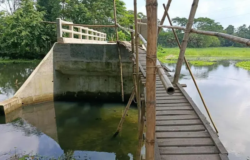 কিন্তু দীর্ঘ ছয় মাস ধরে ঠিকাদার প্রতিষ্ঠান ব্রিজের দু’পাশের ত্রিপোষ সড়ক নির্মাণ না করায় শিক্ষার্থী ও সাধারণ লোকজনের পারাপার হতে হচ্ছে বাঁশের মই বেয়ে। আর বাঁশের মই বেয়ে উঁচু ব্রিজে অনেকে উঠতে গিয়ে দুর্ঘটনার শিকার হচ্ছেন বলে অভিযোগ তাদের। শুধু তাই নয়, এই ব্রিজ দিয়ে প্রতিদিন শতশত লোকজন যাতায়াত করছেন।