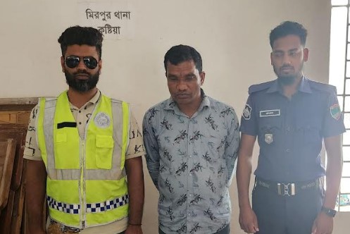 শনিবার (২৭ মে) রাতে কুষ্টিয়া মেহেরপুর সড়কের মিরপুর উপজেলার ভাঙ্গা বটতলা নামকস্থানে গোপন সংবাদের ভিত্তিতে চেকপোষ্ট বসিয়ে মিরপুর থানার এসআই ফরিদুর রেজা, এএসআই মেহেদী হাসান ও সঙ্গীয় ফোর্সসহ অভিযান চালায়।