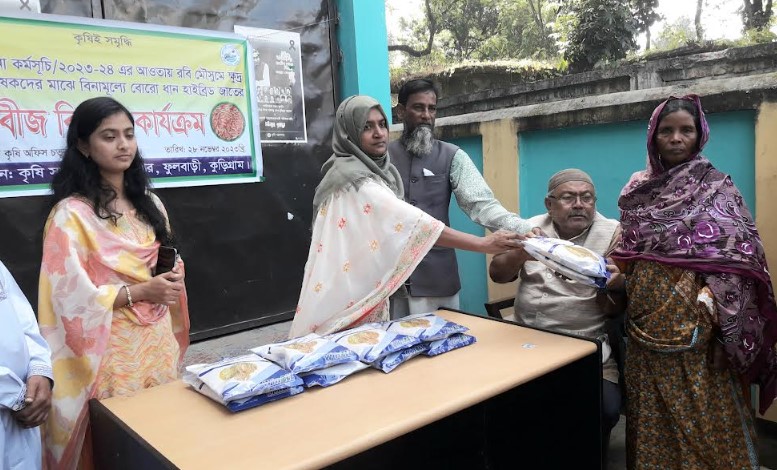 কুড়িগ্রামে ফুলবাড়ীতে ৩ হাজার ৬০০ জন প্রান্তিক কৃষকদের মাঝে হাইব্রিড জাতের ধান বীজ বিতারণ করা হয়েছে কৃষি সম্প্রসারণ অধিদপ্তরের উদ্যোগে।