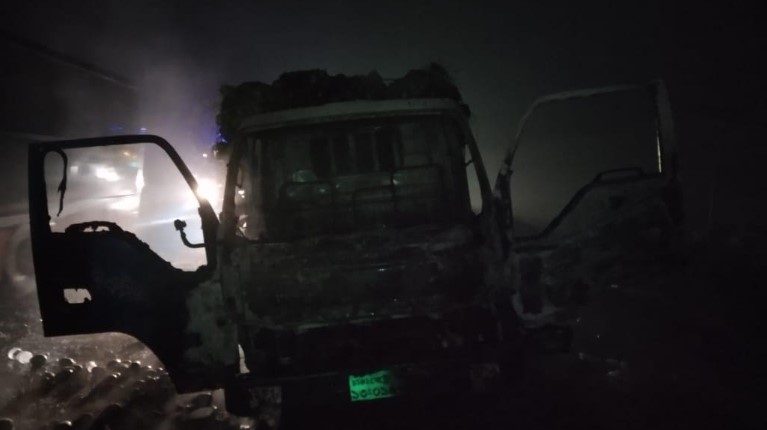 পরিবহনে আগুন দেওয়ার খবর পাবার পরে পুলিশ ও ফায়ারসার্ভিস এসে আগুন নিয়ন্ত্রণে আনে। ততক্ষণে পিকআপটির সামনের পুরো অংশ পুড়ে যায়। তবে এতে কেও হতাহত হয়নি।