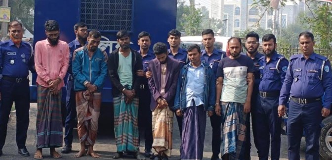 দুর্ধর্ষ ডাকাতির পুলিশি অভিযানে আটকৃতরা হলেন- নোয়াখালীর সোনাইমুড়ী উপজেলার নদনা ইউনিয়নের জগজীবনপুর গ্রামের মৃত আব্দুর রহিমের ছেলে মূল পরিকল্পনাকারী মো.শাহাদাত হোসেন (৩২) একই উপজেলার বজরা ইউনিয়নের মুসলিম গ্রামের হাজী বাড়ির মো.সোলেমানের ছেলে মো.সাদ্দাম হোসেন ওরফে জিতু (৩০), লক্ষীপুরের কমলনগর থানার তোরাবগঞ্জ ইউনিয়নের চরপাগলা গ্রামের মৃত শহীদুল্লার ছেলে মো.নোমান (৩৫), একই জেলার কমলনগর থানার চর মার্টিন ইউনিয়নের পশ্চিম চর মার্টিন গ্রামের মোরশেদ আলমের বাড়ির মো.মোরশেদ আলমের ছেলে মো.সুজন হোসেন (২৭), কমলনগর থানার হাজীরহাট ইউনিয়নের কৃঞ্চপুর গ্রামের ছৈয়াল বাড়ির সুভাষ চন্দ্র সরকারের ছেলে কৃঞ্চ কমল সরকার (৩২), বেগমগঞ্জ উপজেলার চৌমুহনী পৌরসভার করিমপুর এলাকার মুন্সি বাড়ির মৃত অলি উল্যার ছেলে সালাউদ্দিন (৩২), কবিরহাট উপজেলার কবিরহাট পৌরসভার ১নম্বর ওয়ার্ডের জৈনদপুর গ্রামের মোশারফ বিএসসির বাড়ির মৃত মো.শহীদুল্লার ছেলে মো.মিজানুর রহমান ওরফে রনি (৩৬)।