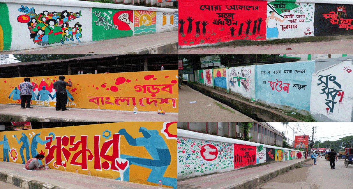 শিক্ষার্থীরা বলেন, দেশটাকে আমরা রঙিন করে সাজাতে চাই। দেশের বিরত্বগাঁথা ইতিহাস দিয়ে ভরে ফেলতে চাই দেয়ালগুলো। নগরীর বিভিন্ন যায়গায় আমরা একসঙ্গে কাজ করছি, দেয়ালে গ্রাফিতির দ্বারা বার্তা পৌঁছে দিতে চাচ্ছি সকলের কাছে, দেশটাকে যেন নতুনভাবে গড়ে তুলতে পারি।