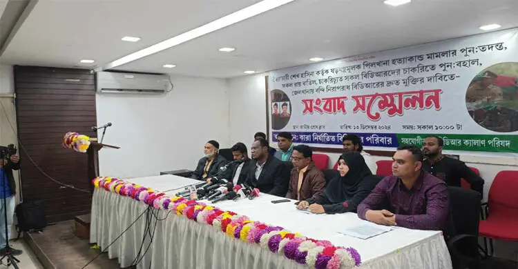 পিলখানা হত্যাকাণ্ড মামলার পুনঃতদন্ত এবং জেলখানায় বন্দি নিরপরাধ বিডিআর সদস্যদের দ্রুত মুক্তির দাবি জানিয়েছে ভুক্তভোগীদের পরিবার।