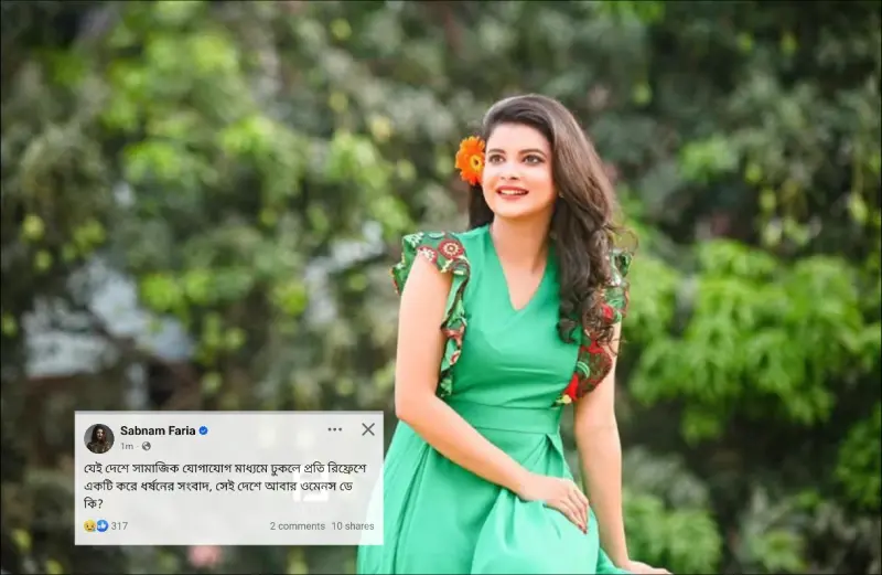 সেই স্ট্যাটাসের পর আজ মধ্যরাতে ফারিয়া আরেকটি স্ট্যাটাস দেন। যেখানে ক্যাপশনে তিনি লিখেন, 'যেই দেশে সামাজিক যোগাযোগ মাধ্যমে ঢুকলে প্রতি রিফ্রেশে একটি করে ধর্ষনের সংবাদ, সেই দেশে আবার ওমেনস ডে কি?'