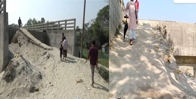 প্রায় ৫ কোটি টাকার সেতুতে নেই সংযোগ সড়ক সীমাহীন দুর্ভোগে দুই ইউনিয়নের কয়েক হাজার মানুষ। ব্রিজটির দুই পাশে সংযোগ সড়ক না থাকায় প্রায় ঘটছে দুর্ঘটনা, ছাত্র-ছাত্রীরা নির্ভয়ে যেতে পারছেনা বিদ্যাপীঠে, হাট-বাজারে, ব্যবসা বানিজ্য হচ্ছে না আগের মত। শিশু থেকে বৃদ্ধ সবাই থাকে আতঙ্গে কখন ঘটে দুর্ঘটনা। বার বার কালকিনি এলজিইডি শরনাপন্ন হলেও মিলছে না প্রতিকার।