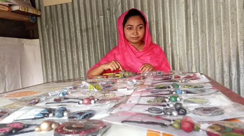 জানা যায়, গহনা তৈরিতে ব্যবহার করছেন মাটি, কাচামাল ও রং। মাটির উপর বাহারি ডিজাইনের নিখুত নকশা করে তিনি গহনা করছেন। এরমধ্যে রয়েছে নিখুতভাবে তৈরি কানের দুল, গলার সেট, মালা, হাতের চুড়িসহ নানাবিধ গহনা। শুরুতে তেমন সাড়া না পেলেও বর্তমানে বেশ সাড়া পাচ্ছেন। টেকসই এ গহনা দামও কম। প্রকারভেদে প্রতি সেট গহনা ৭০ টাকা থেকে ১৫০ টাকায় বিক্রি করছেন তিনি। তার এমন উদ্যোগকে স্বাগত জানিয়েছেন এলাকাবাসী। বর্তমানে তিনি তার স্বামী গাজী সোলায়মানের (উত্তর টিয়াখালী) বাড়ীতে বসে অনলাইনে বিক্রি করে ব্যবসা পরিচালনা করছেন।