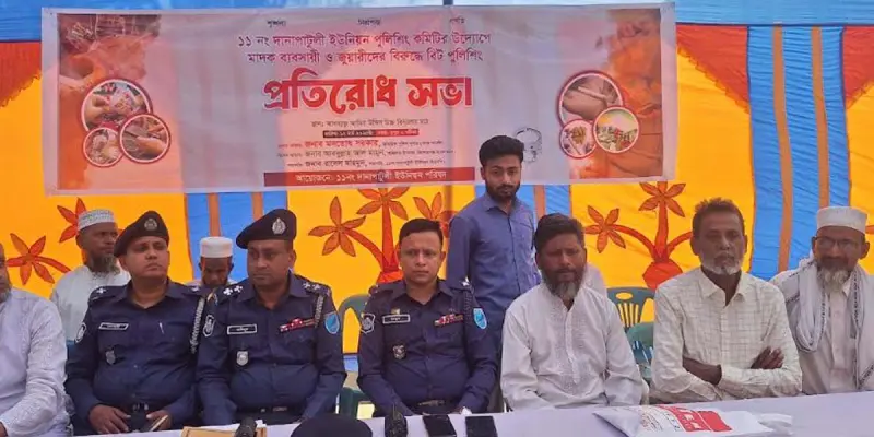 মাদক ব্যবসায়ী ও জুয়ারীদের প্রতিহত করতে কিশোরগঞ্জ সদর উপজেলার ১১ নং দানাপাটুলী ইউনিয়ন পুলিশিং কমিটির উদ্যোগে মাদক ব্যবসায়ী ও জুয়ারীদের বিরুদ্ধে বিট পুলিশিং প্রতিরোধ সভা অনুষ্ঠিত হয়েছে।