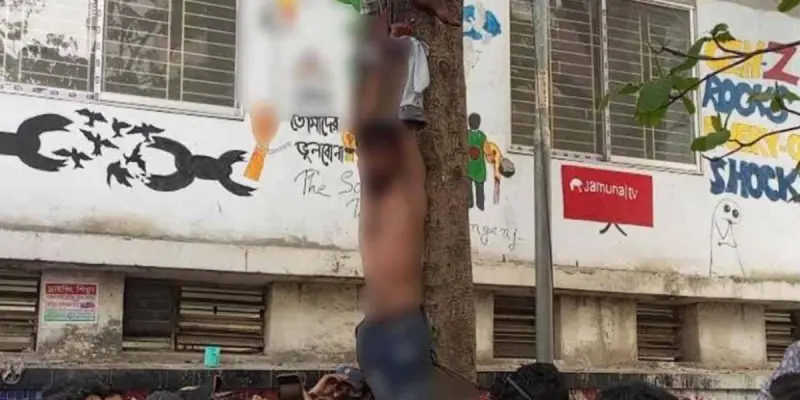 চুরির অভিযোগ এনে নারায়ণগঞ্জ শহরের কেন্দ্রীয় শহীদ মিনারে এক যুবককে গাছে ঝুলিয়ে পেটানো হয়েছে।