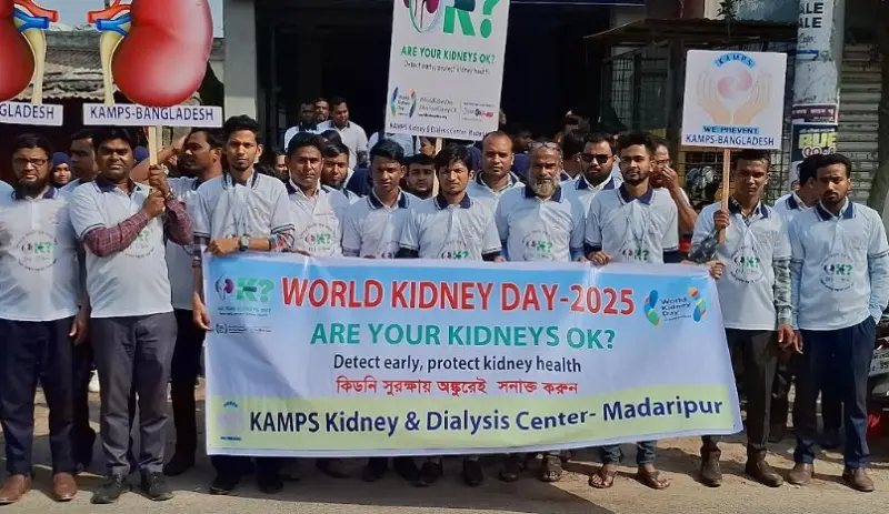 "কিডনি সুরক্ষায় অঙ্কুরেই সনাক্ত করুন" স্লোগানকে সামনে রেখে মাদারীপুরে বিশ্ব কিডনি দিবস পালিত হয়েছে। ক্যাম্পাস কিডনি এন্ড ডায়ালইসিস সেন্টার মাদারীপুর শাখার আয়োজনে দিবসটি পালন করা হয়।