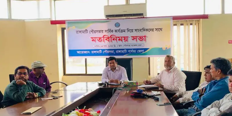 রাঙ্গামাটি পৌরসভায় নবনিযুক্ত পৌর প্রশাসক মো.মোবারক হোসেন স্থানীয় গণমাধ্যম কর্মীদের সাথে পৌরসভার সার্বিক কার্যক্রম নিয়ে মতবিনিময় করেছেন। আজ ১৩ মার্চ পৌরসভার সম্মেলন কক্ষে বিকেল ৩ টায় এই মতবিনিময় সভা অনুষ্ঠিত হয়। মতবিনিময় সভায় রাঙ্গামাটি প্রেস ক্লাবের সভাপতি মো.সাখাওয়াত হোসেন রুবেল,সাধারন সম্পাদক আনোয়ার আল হক সহ রাঙ্গামাটিতে কর্মরত প্রিন্ট ও ইলেকট্রনিক মিডিয়ায় কর্মরত সাংবাদিকরা উপস্থিত ছিলেন।
