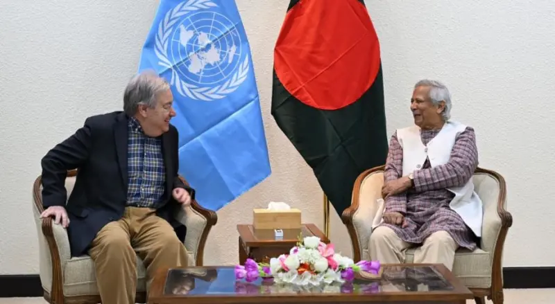 অধ্যাপক ইউনুস জাতিসংঘের মহাসচিবকে দেশের গুরুত্বপূর্ণ সময়ে সফর করার জন্য ধন্যবাদ জানান। তিনি বলেন, আপনার সফর শুধু রোহিঙ্গাদের জন্যই নয়, বাংলাদেশের জন্যও সময়োপযোগী।