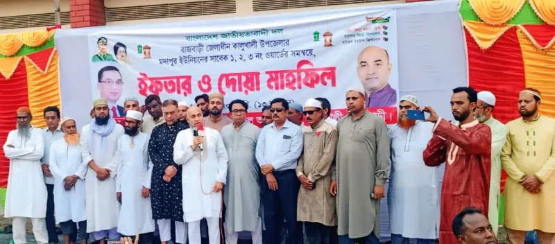 শুক্রবার (১৪ মার্চ) রাজবাড়ীর কালুখালী উপজেলার মদাপুর ইউনিয়ন বিএনপির আয়োজনে ইফতার ও দোয়া মাহফিল অনুষ্ঠানে প্রধান বক্তার বক্তব্যে এসব কথা বলেন তিনি।