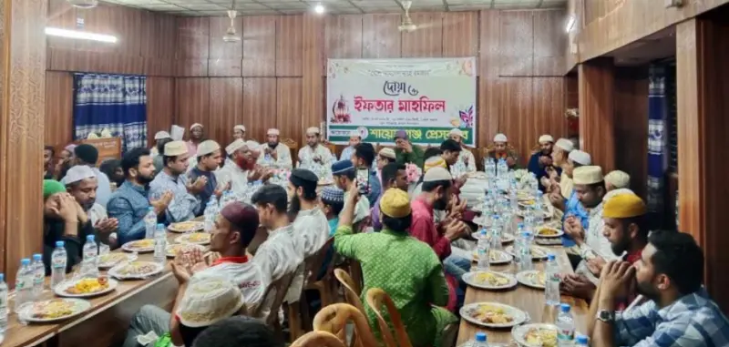 শায়েস্তাগঞ্জ প্রেসক্লাবের দোয়া ও ইফতার মাহফিল অনুষ্ঠিত হয়েছে। শুক্রবার (১৫ মার্চ) ক্লাব মিলনায়তনে ইফতার পূর্ব আলোচনা সভা অনুষ্ঠিত হয়। প্রেসক্লাবের সভাপতি মঈনুল হাসান রতনের সভাপতিত্বে ও সাধারণ সম্পাদক মোঃ কামরুল হাসানের সঞ্চালনায় সভায় প্রধান অতিথির বক্তব্য রাখেন, শায়েস্তাগঞ্জ পৌরসভার সাবেক মেয়র ও বর্তমান পৌর বিএনপি সভাপতি মোঃ ফরিদ আহমেদ অলি।