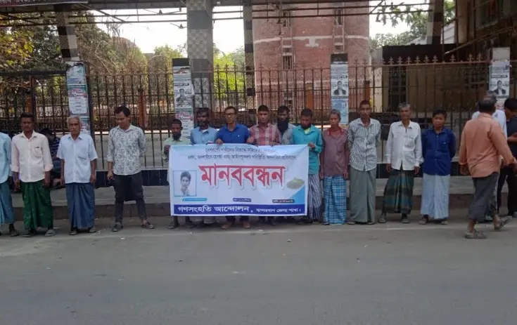 শনিবার (১৫ মার্চ) সকালে বান্দরবান প্রেস ক্লাবের সামনে আয়োজিত এই মানববন্ধনে গণসংহতি আন্দোলনের নেতাকর্মীরা সহ বিভিন্ন শ্রেণি-পেশার মানুষ অংশগ্রহণ করেন।