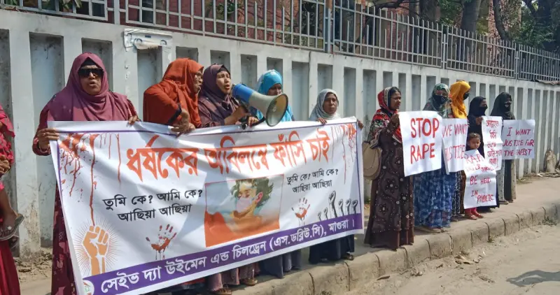 মাগুরায় আট বছরের শিশু হত্যার ঘটনায় মানববন্ধন ও প্রতিবাদ সমাবেশ করেছে সেভ দা উইমেন এন্ড চিল্ড্রেন সামাজিক সংগঠন। রবিবার (১৬ই মার্চ) সকালে মাগুরা জেলা প্রেসক্লাবের সামনে এ মানববন্ধন অনুষ্ঠিত হয়।