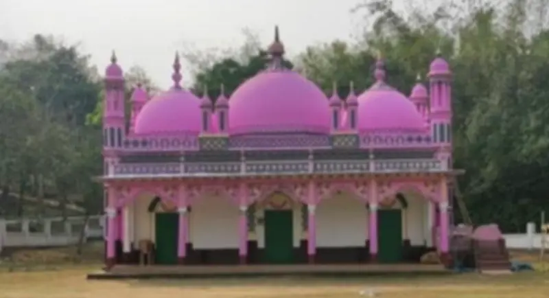 জানা যায়, প্রায় ১৮৬৬ সালে এ মসজিদটি নির্মাণ করেন বিষ্ণুপুর ইউনিয়নের ছতরপুর গ্রামে চৌধুরী বাড়ির পূর্বপুরুষ প্রয়াত আমজাদ হোসেন চৌধুরী। মসজিদ নির্মাণ করা প্রায় ২৫ বিঘা জমিতে। মসজিদটির সবার নজর কাড়ে আদি কালের নকশা ও কারুকলা কাজে জন্য । মসজিদটির মধ্যে ৩ টি গুম্বজ রয়েছে। মাঝের গুম্বজটি আকারে বড়। দুপাশের গুম্বজগুলোর আকার কিছুটা ছোট। ভিতরে এবং বাহিরে চমৎকার কারুকাজ। গোলাপি রংয়ের এই মসজিদটির দেয়ালের পুরুত্ব প্রায় ৩ ফুট। মসজিটির পাশেই রয়েছে অজুখানা ও ইমাম সাহেবের থাকার স্থান। ৩ পাশে বাউন্ডারি ও মসজিদের সামনে বিস্তৃর্ণ ঈদগাহ মাঠ। সবমিলিয়ে মনোরম পরিবেশে এই নান্দনিক মসজিদটি অবস্থিত। এই মসজিদে প্রতিদিন শতাধিক মুসল্লী পাঁচ ওয়াক্ত নামায আদায় করেন। শুক্রবার জুমা'আর নামাজ ও মাহে রমজানে তারাবির নামাজে কানায় কানায় পূর্ণ হয় মুসল্লী। মসজিদের ভিতর সংকীর্ণ হওয়ায় মুসল্লিদের জায়গা হয়। তাই মাঝেমধ্যে ঈদগাহ মাঠে নামাজ আদায় করেন হয়।