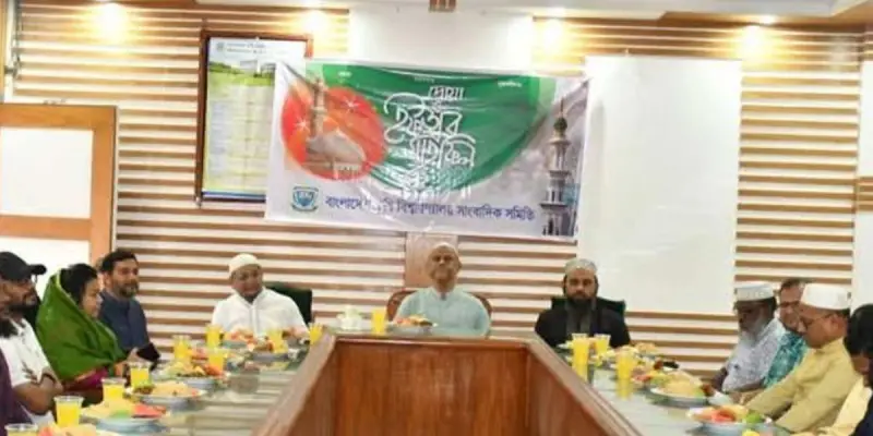 ছাত্র বিষয়ক উপদেষ্টা অধ্যাপক ড. মো. শহীদুল হক জানান, “রমজান অত্যন্ত ফজিলতপূর্ণ ও সংযমের মাস। সৃষ্টিকর্তার সন্তুষ্টির জন্য আমরা এই এক মাস সংযমের যে প্রশিক্ষণ গ্রহণ করি, তা পরবর্তী মাসগুলোতেও প্রয়োগ করতে হবে, যাতে আমরা মিলেমিশে বসবাস করতে পারি। একসময় কথা বলার ক্ষেত্রে উপর থেকে নির্দেশনা দেওয়া হতো—কী বলতে হবে আর কী বলতে হবে না। তবে এখন আর তা নেই। আমাদের আগামী কার্যক্রমের গতি বাড়ানোর জন্য এবং পারস্পরিক সহিষ্ণুতা বজায় রাখার লক্ষ্যে আমরা সবাইকে সহযোগিতামূলক মনোভাব প্রত্যাশা করছি।