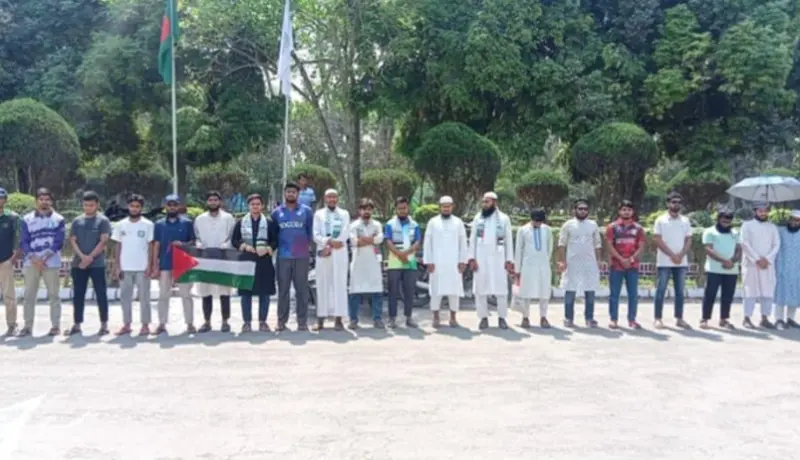 ফিলিস্তিনের গাজায় ইসরায়েলী বাহিনী কতৃক নৃশংস হামলার প্রতিবাদে মানববন্ধন করেছে ইসলামী বিশ্ববিদ্যালয়ের (ইবি) শিক্ষার্থীরা।