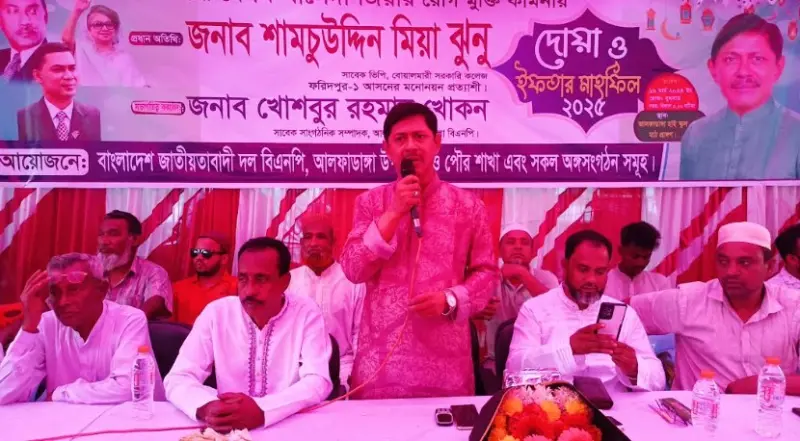 বুধবার (১৯ মার্চ) বিকালে আলফাডাঙ্গা উপজেলা সদরের আরিফুজ্জামান সরকারি উচ্চ বিদ্যালয়ের মাঠ প্রাঙ্গণে সাবেক প্রধানমন্ত্রী ও বিএনপির চেয়ারপার্সন বেগম খালেদা জিয়ার আশু রোগমুক্তি কামনায় এক দোয়া ও ইফতার মাহফিলে প্রধান অতিথির বক্তব্যে এসব কথা বলেন তিনি।